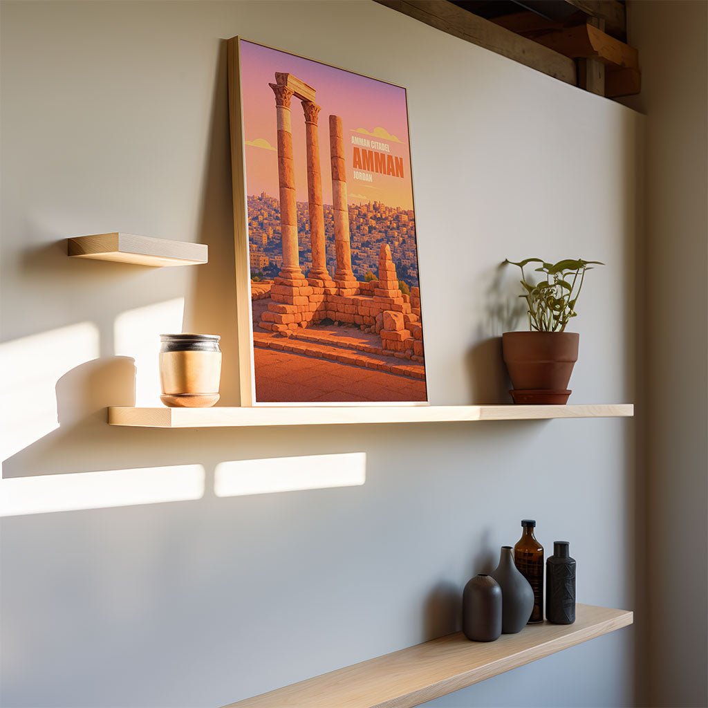 Ideal for fans of Middle Eastern heritage, Roman archaeology, or skyline-meets-antiquity scenes, this museum-quality print fits perfectly into earthy, travel-inspired, or history-filled interiors. Printed on archival paper using eco-friendly inks, it also makes a thoughtful gift for lovers of الأردن (Jordan) or anyone with a connection to this timeless hilltop.