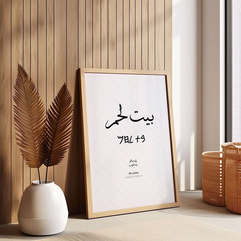 Perfect for those seeking meaningful Islamic wall art, Arabic typography, or heritage-inspired decor, this print is designed to create a focal point of quiet strength. The clean, monochrome aesthetic against a subtly patterned background allows the intricate linework of the calligraphy to take centre stage, making it a versatile addition to a living room, hallway, or creative studio. Whether you have personal roots in Bethlehem (بيت لحم), Palestine (فلسطين) or simply admire the rich tapestry of Middle Eastern history, this artwork brings a sense of grounded identity and timeless beauty to your space.