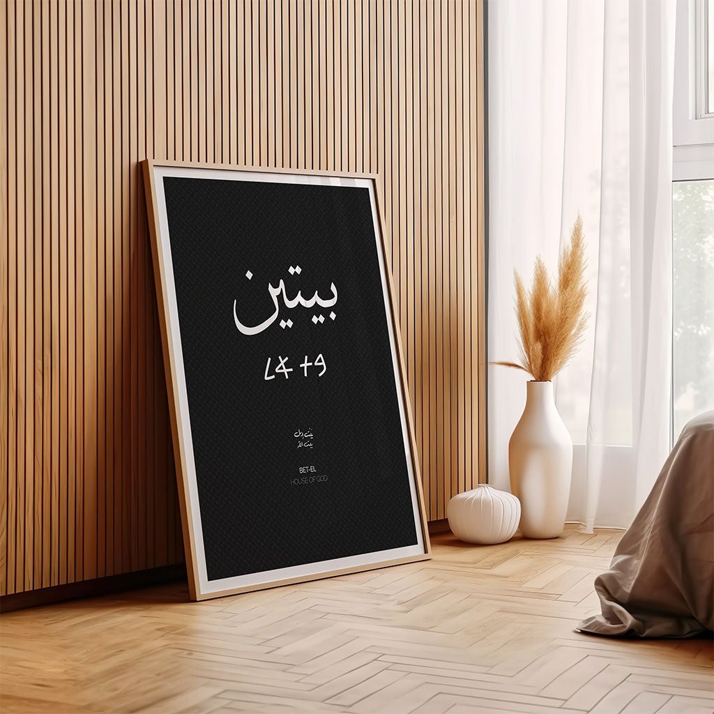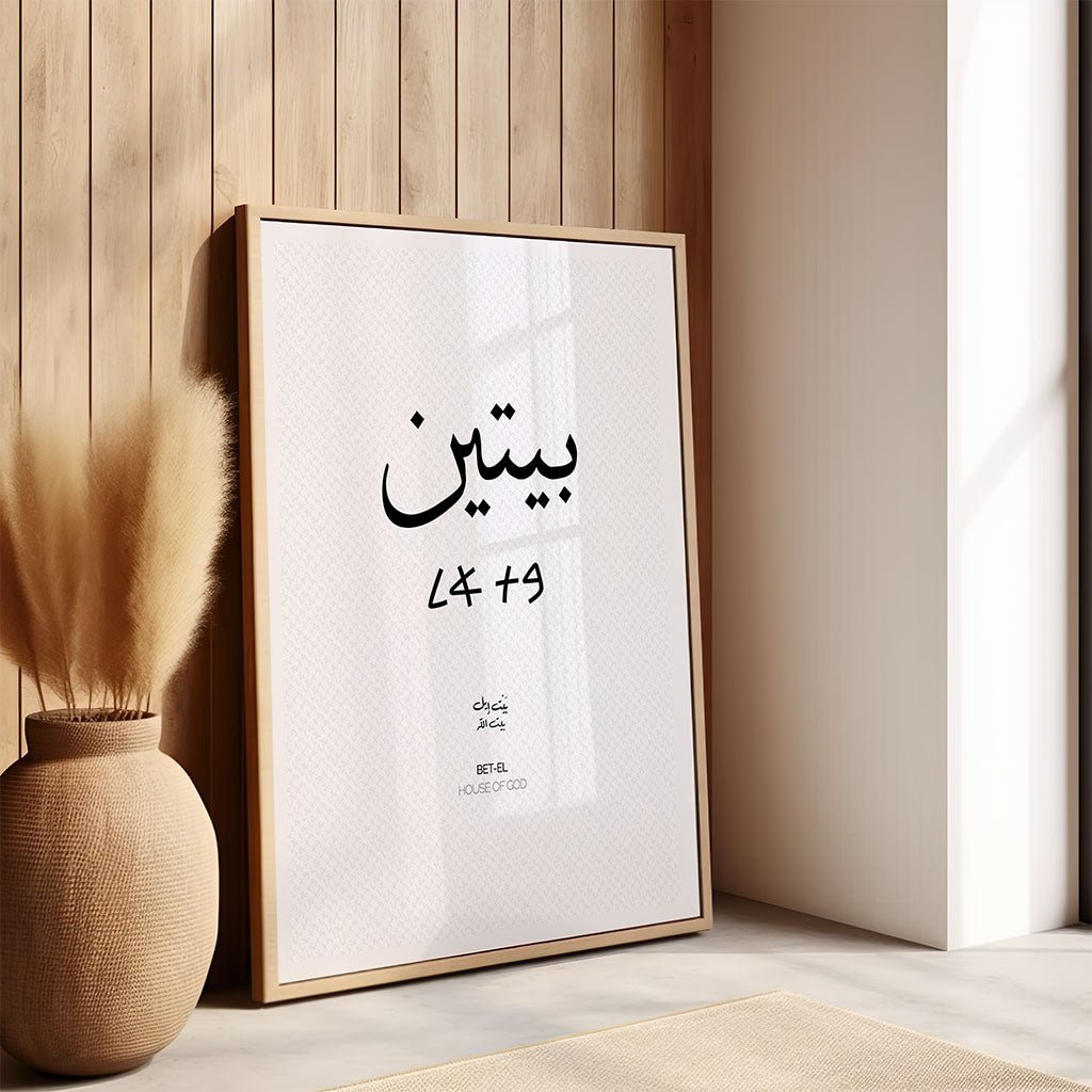Printed on museum-quality archival paper using eco-friendly, non-toxic inks, this high-resolution print ensures that every curve of the script remains sharp and vibrant for years to come. It makes a deeply thoughtful gift for housewarmings, weddings, or for anyone wishing to keep the spirit of Palestine (فلسطين) close to their heart. This typographical and linguistic masterpiece provides a sophisticated touch of cultural depth to your walls, celebrating the enduring legacy of Bet-El with refined elegance.