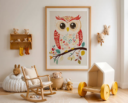 Bring a touch of whimsical charm to your space with “Floral Wisdom,” a delightful art print featuring a beautifully detailed owl perched on a branch. The owl’s feathers are adorned with vibrant floral patterns in shades of red, yellow, and blue, giving it a playful yet wise appearance. The soft, delicate design captures the essence of nature, combining floral elements with the majesty of this beloved nocturnal creature.