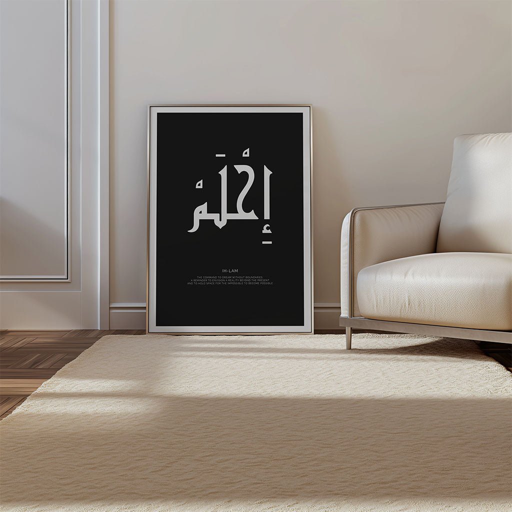 To ensure this work of art remains a prestigious part of your home for years to come, every FN Print is produced to rigorous museum-grade archival quality standards. We utilize heavy-weight, acid-free gallery paper and specialized fade-resistant inks to ensure the deep black of the calligraphy and the crisp white background retain their high-definition clarity without yellowing over time. Offered in multiple sizes, this "Ih-lam" print provides a sophisticated way to integrate meaningful Arabic culture into a contemporary lifestyle, providing a lasting window into the power of the human imagination.