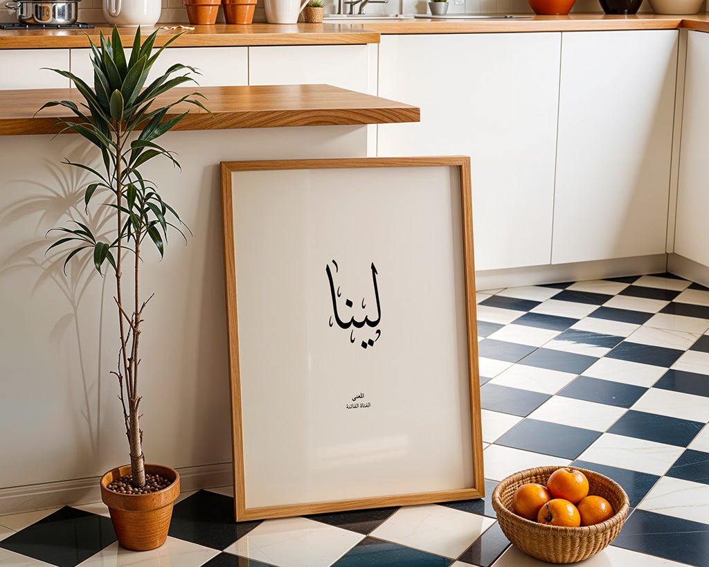 Printed on high-quality, museum-grade paper using eco-conscious inks, the Lina poster is designed to be both visually striking and long-lasting. Ideal for bedrooms, living rooms, or as a heartfelt gift, it adds a soft personal touch while honoring Arabic language and culture.