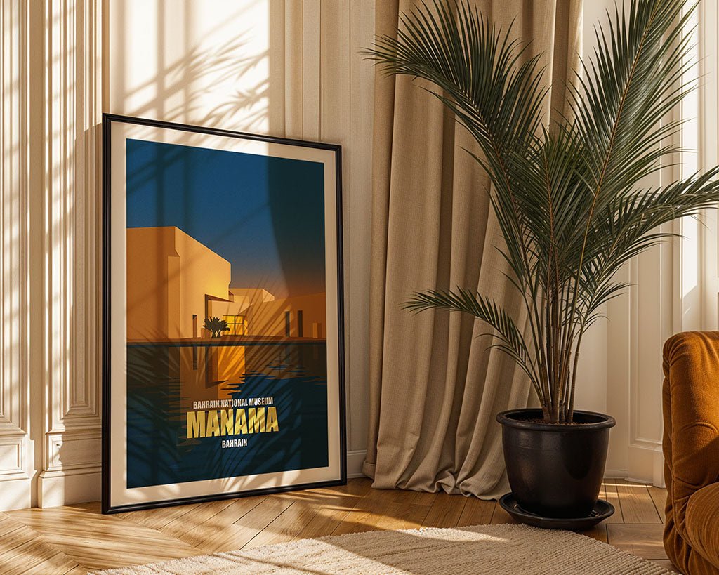 If your decor feels flat or generic, this Bahrain National Museum poster solves it with story and structure. The print anchors a living room, study, or hallway with confident form and a sophisticated colour palette that pairs well with natural wood, linen textures, and matte frames. Collectors of retro travel art and Gulf region wall art will recognise the quiet authority it brings to a gallery wall. Designed for long-term display, each piece is produced on museum-quality archival paper using non-toxic, eco-friendly inks for strong detail and lasting colour. Sustainable packaging protects the artwork in transit, and a range of sizes makes styling simple—choose a large format for a focal wall or a smaller size to layer with city maps and photography. Whether you’re gifting a Bahrain native, celebrating a Manama memory, or curating a modern architectural theme, this Manama wall art delivers heritage, design, and stillness in one considered print.