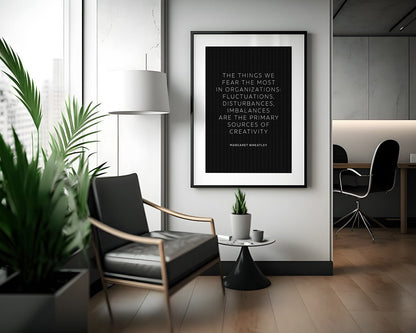 This thought-provoking quote by Margaret Wheatley serves as a reminder that creativity often arises from the very challenges we fear. Perfect for workspaces, offices, or creative studios, this print encourages embracing disruptions and challenges as catalysts for innovation.