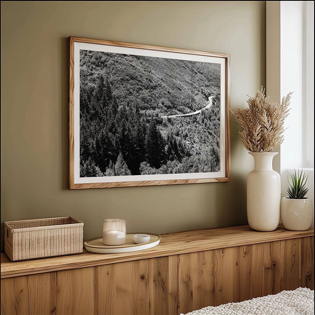 This cinematic landscape print is an excellent choice for adding depth and a sense of "the great outdoors" to a modern interior. Its monochromatic palette and organic textures make it a perfect fit for Industrial, Rustic, or Minimalist decor. We recommend displaying this in a home office, a hallway, or a living room where its strong leading lines can guide the eye and create an atmosphere of exploration and tranquility.