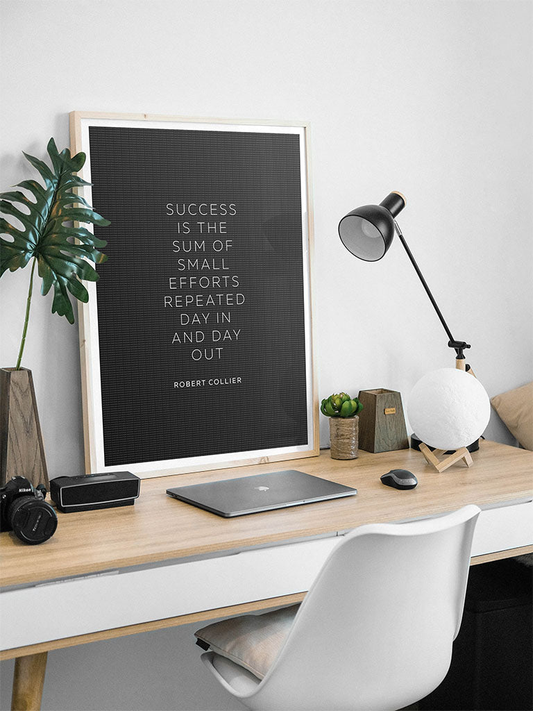 This empowering quote by Robert Collier reminds us that success doesn’t happen overnight – it’s built through consistent, everyday efforts. Whether you’re working towards a personal goal or striving to excel in your career, this print will serve as a constant reminder to stay dedicated, stay persistent, and keep moving forward. Perfect for any space where motivation is needed, such as a home office, study, or gym, it encourages you to take pride in the small, everyday tasks that add up to great achievements.
