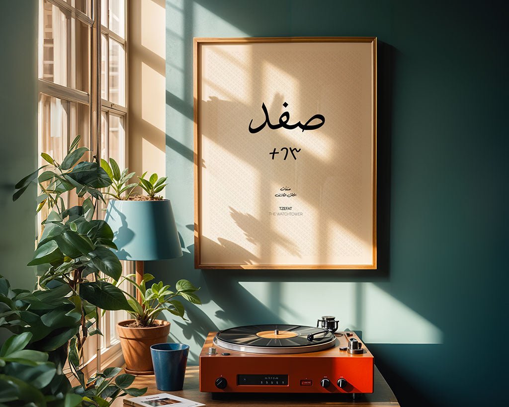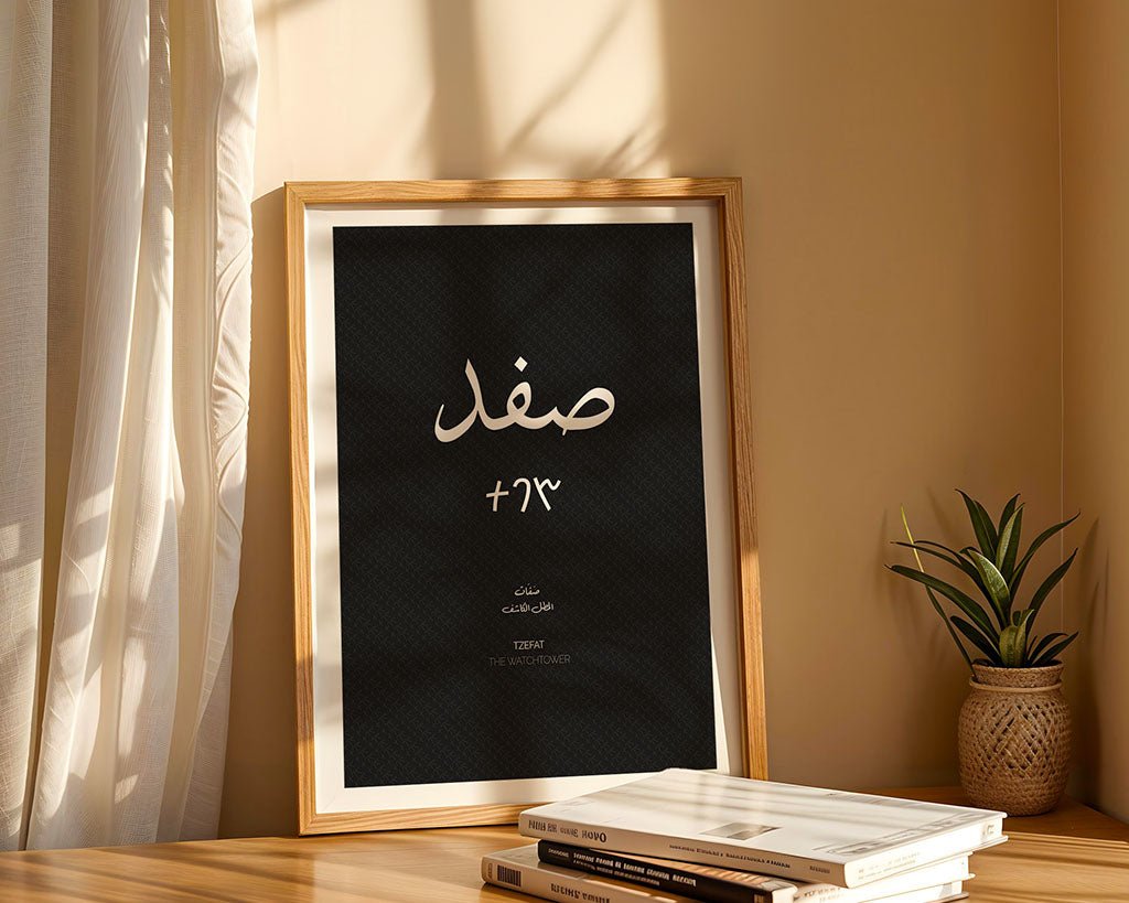 Printed on museum-quality archival paper using eco-friendly, non-toxic inks, this high-resolution print ensures that every delicate curve of the script remains sharp and vibrant for years to come. It makes a deeply thoughtful gift for housewarmings, weddings, or for anyone wishing to keep the spirit of Palestine (فلسطين) close to their heart. This typographical and linguistic masterpiece provides a sophisticated touch of cultural depth to your walls, celebrating the storied legacy of Safed with refined elegance.
