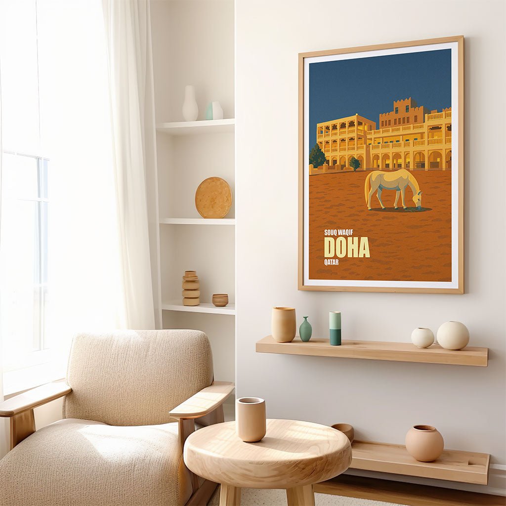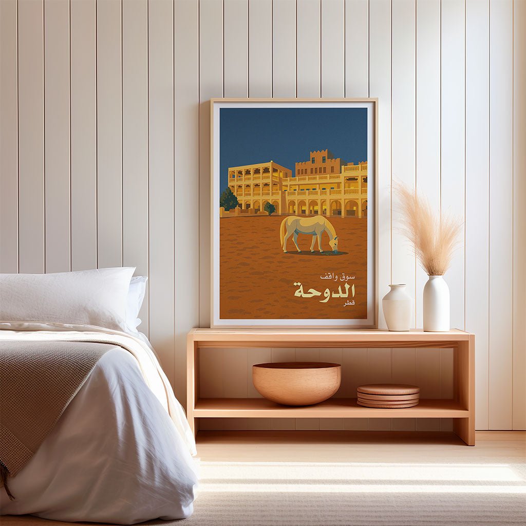 Part of our Qatar Retro Travel Poster Collection, this print is ideal for equestrian lovers, cultural enthusiasts, and collectors of meaningful Middle Eastern wall art. Style it as a standalone piece in a hallway or pair it with our other Doha prints like the Amphitheatre, Msheireb, or National Library for a beautifully curated Qatar wall.