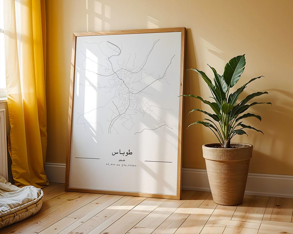 Printed on museum-quality archival paper using eco-friendly, non-toxic inks, this high-resolution map ensures that every fine line and cartographic detail remains sharp for years to come. It makes a deeply thoughtful and personalised gift for housewarmings, graduations, or for anyone wishing to keep a piece of the Palestinian landscape close to their heart. This map provides a sophisticated touch of cultural depth to your walls, celebrating the lasting legacy of Tubas (طوباس), Palestine (فلسطين) with minimalist clarity.