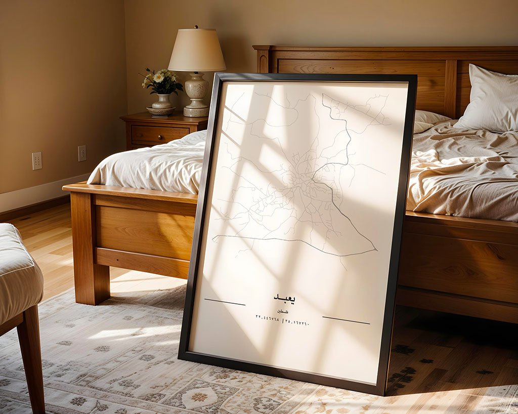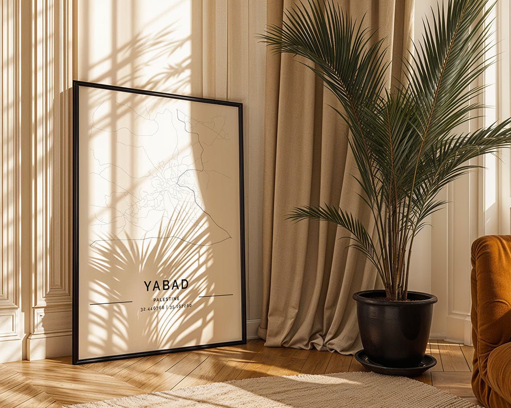 Perfect for those seeking modern wall art, minimalist map decor, or Palestine-inspired interiors, this print is designed to create a focal point of quiet dignity and connection. The crisp black-on-white aesthetic ensures it integrates seamlessly into a variety of decor styles, from professional offices to minimalist living spaces. Whether you have personal roots in the olive-rich hills of Yabad (يعبد) or simply appreciate the beauty of cartographic art, this print brings a sense of grounded history and modern elegance to your gallery wall.