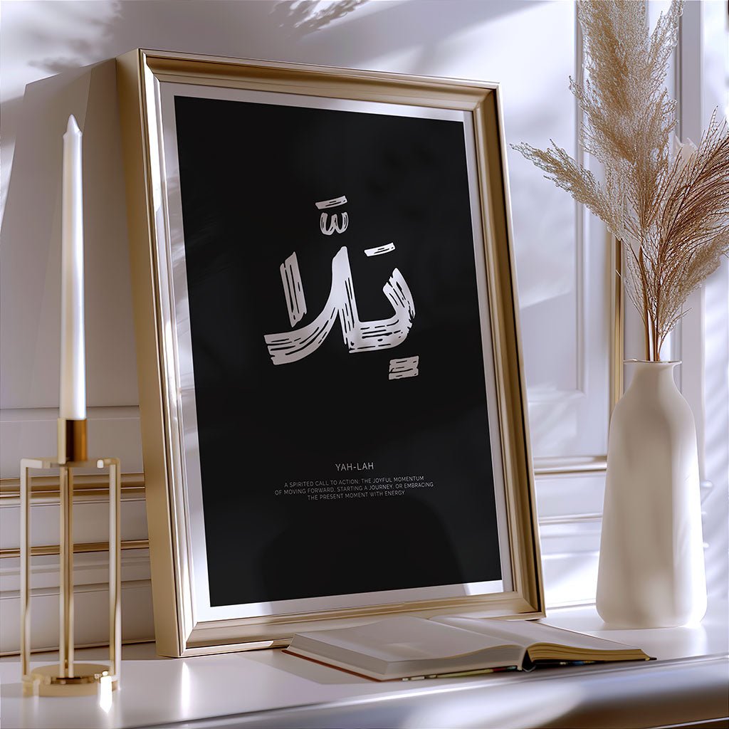 To ensure this powerful cultural icon remains a prestigious centerpiece in your home for decades, every FN Print is produced to rigorous museum-grade archival quality standards. We utilize heavy-weight, acid-free gallery paper and specialized fade-resistant inks to ensure the deep, velvety black of the calligraphy and the crisp white background maintain their high-definition clarity without yellowing over time. Offered in multiple sizes, this "Yah-lah" print provides a modern way to integrate authentic Arabic heritage into a contemporary lifestyle, providing a lasting visual reminder of the power of forward motion.